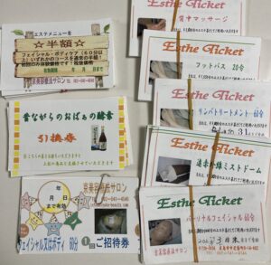 エステ券(遠赤ドーム30分 3000円 エステ券 60分 10,000円~90分 13,000円 背中・頭など部分マッサージ等)